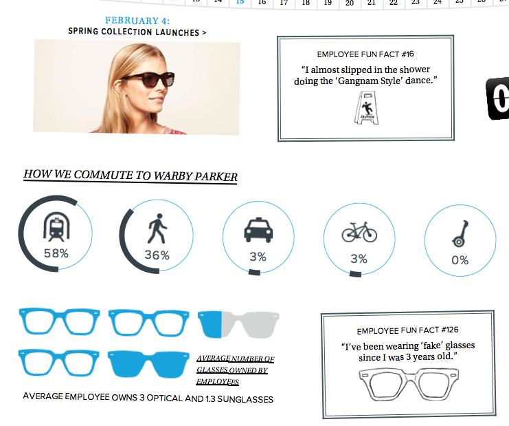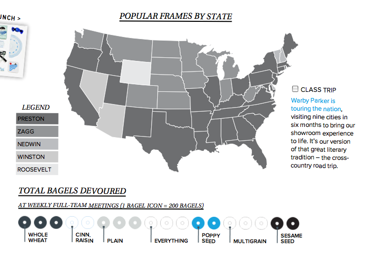 The email I got yesterday caught my eye because it doesn’t do any selling – it just directs customers to this interactive “Annual Report,” which tells the story of Warby Parker’s year through data like: